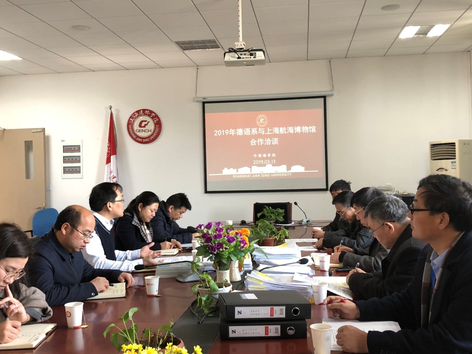 2019年3月12日在外国语学院229会议室,上海航海博物馆第三党支部和上海建桥学院外国语学院就2019年建立学生校外实习基地的合作项目进行了洽谈。参与合作洽谈的有:中国翻译工作者协会理事宋新新、上海航海博物馆周群华博士和第三党支部的工作人员、外国语学院院长毛立群、党总支副书记李雷、德语系主任刘顺生、院办主任董显洋、以及外国语学院辅导员袁月。合作洽谈会议就外国语学院学生校外实习基地的建立和具体工作的开展进行了深入的讨论。根据国家教育部关于加强高等学校学生生产实习和社会实践工作相结合的精神,为了提高学生的实际工作能力和教学质量、培养高素质人才,以尽快适应社会发展的人才需求、加强我院实践环节的教学、建立稳定的教学实习基地,上海建桥学院党总支和上海航海博物馆第三党支部通过深入的了解沟通,确立建立长期合作的校外实习基地(以德语系为主要试点部门)。上海航海博物馆将在今后的合作中为外国语学院的学生提供一个全方位的翻译服务、专业语言锻炼的综合立体平台,为学生创造一个生动的第二课堂,为学生今后更好地适应社会打下坚实的基础。外国语学院毛立群院长向上海航海博物馆对外国语学院学生教学教育工作的支持表示了真切