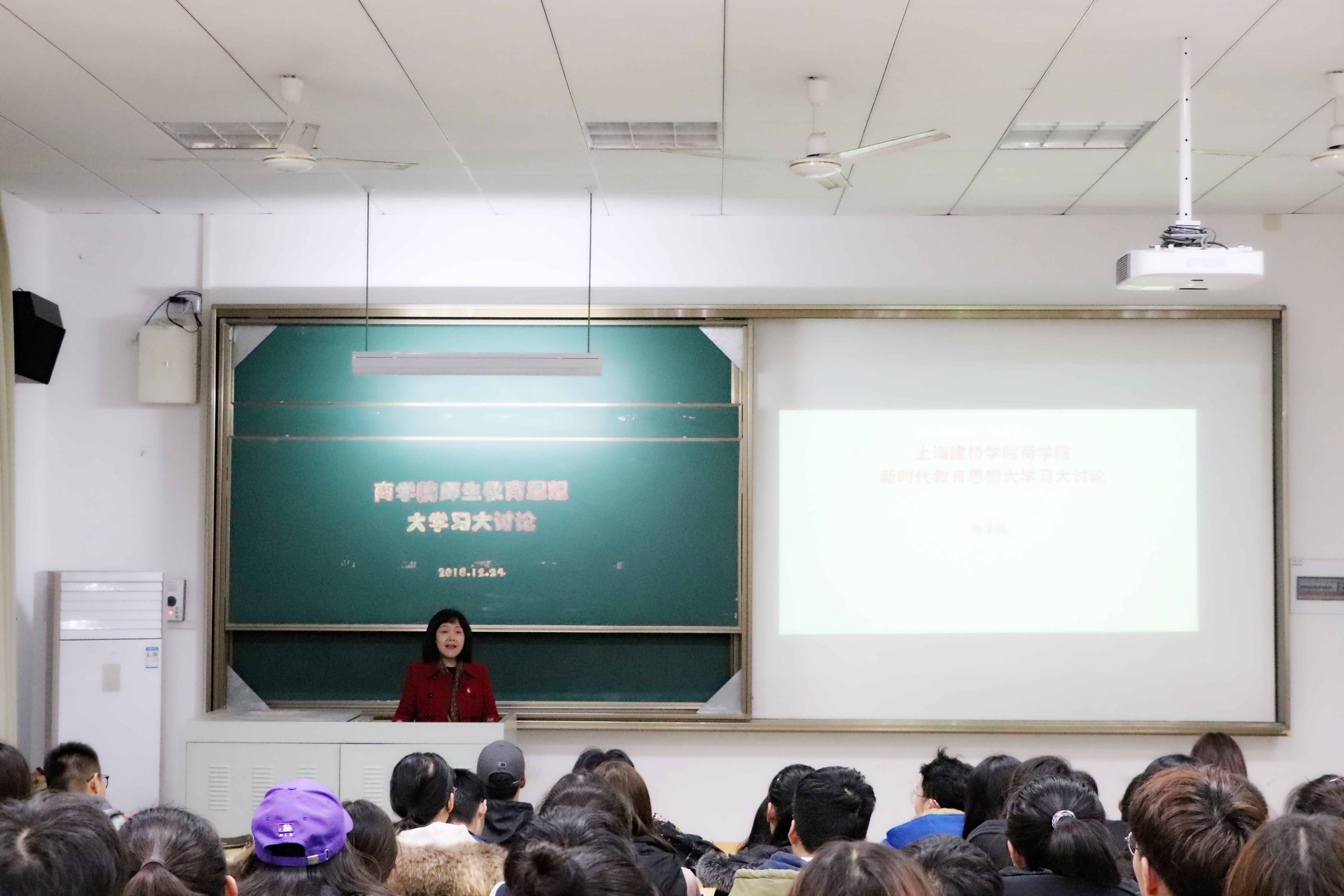 3月4日下午,“致敬祖国,礼赞巾帼”庆祝中华人民共和国70华诞上海市三八红旗手标兵激光专家梁晓燕主题演讲会暨2019年上海市妇联系统“传旗”修身行首讲在上海建桥学院新闻学院演播厅举行。校工会女工委员、校妇委会委员徐磊老师主持,工会副主席潘秀玲及来自全校近百名女教师、女大学生聆听了梁晓燕的报告。(梁晓燕)会场上,时而鸦雀无声,时而掌声雷动。上海市三八红旗手标兵、中科院上海光机所强场激光物理国家重点实验室副主任、研究员、博士生导师梁晓燕的事迹吸引了每一位现场师生。梁晓燕作为副总工程师致力于上海科创中心“上海超强超短激光装置”建设,带领团队在高能量激光放大等关键技术领域取得系列重大突破,实现了国际最高峰值功率的超强超短激光脉冲放大输出。(师生聆听讲座)在“超强超短激光装置”建设领域,男性科研工作者占了绝大多数,而身材娇小、外表柔弱的梁晓燕巾帼不让须眉,在这一领域奋斗了近30年,为科研献身的坚定信念不动摇。她克服病痛折磨,带领团队,日夜奋战,自主创新,解决了一系列“卡脖子”技术难题,获得了多项国家专利。在2017年党的“十九大”闭幕当天,实现了激光10拍瓦的能量放大输出,等于创造了“10个太阳