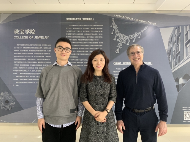 11月6号中午,珠宝学院副院长刘衔宇接待了前来访问的美国吉尔德(Guild)宝石实验室执行总裁Ruby女士,吉尔德宝石学院副院长、首席实地宝石学家AndyLucas一行。刘衔宇副院长向来访的嘉宾介绍了学校应用型本科办学的定位,珠宝学院的办院历史,办学规模、专业培养计划以及宝石及材料工艺学专业的专业建设,并参观了学生社团—无可设计工作室和珠宝学院宝石鉴定实验室、钻石分级实验室、大型仪器实验室和首饰制作实验室等。来访的吉尔德宝石实验室的两位嘉宾也就吉尔德的创办历史、科研近况以及珠宝教育培训课程等方面和刘衔宇副院长进行了交流和探讨。Ruby女士和Andy先生对建桥学院珠宝学院的办学规模、专业设置以及培养定位等方面的情况进行了深入的了解并给予了高度的肯定,双方均认为有着良好的合作基础和前景,希望能在未来的科研、教育培训以及珠宝检测方面进行合作。(从左至右刘衔宇/ruby/andy)