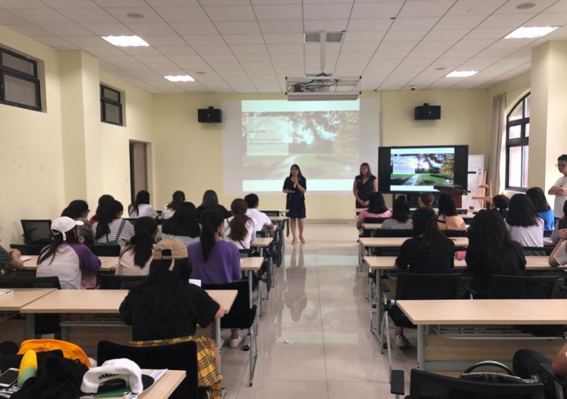 9月12日,美国奥特本大学国际招生高级助理专员AlyssaLibby女士在外国语学院129室就目前我院与该校的交换合作项目对英语系同学进行了宣讲。