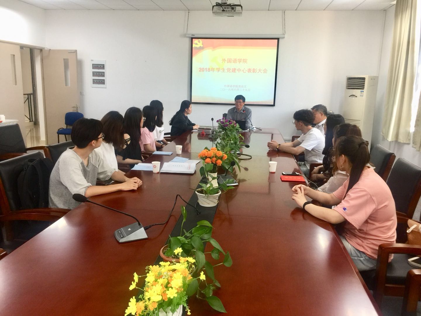 7月10日,外国语学生党建中心在学院楼229室举行表彰仪式。外国语学院党总支书记杨大亮教授、党总支副书记李雷老师、学生党建中心指导老师焦丽以及全体党建中心学生参加表彰会。