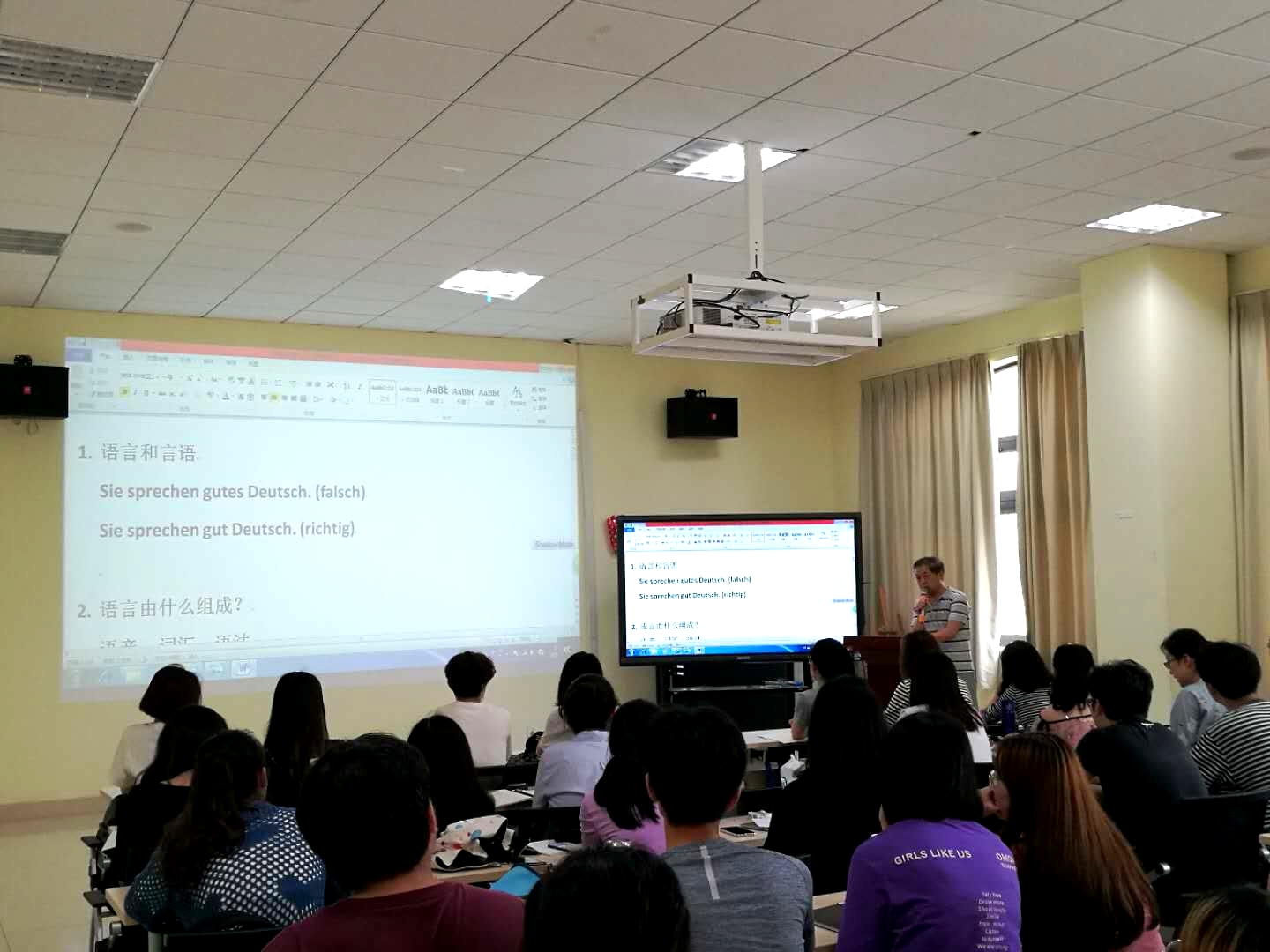 6月6日,外国语学院德语系邀请复旦大学夏正标教授,面向德语专业16级,17级学生,举行德语语言学、德语学习的相关讲座。