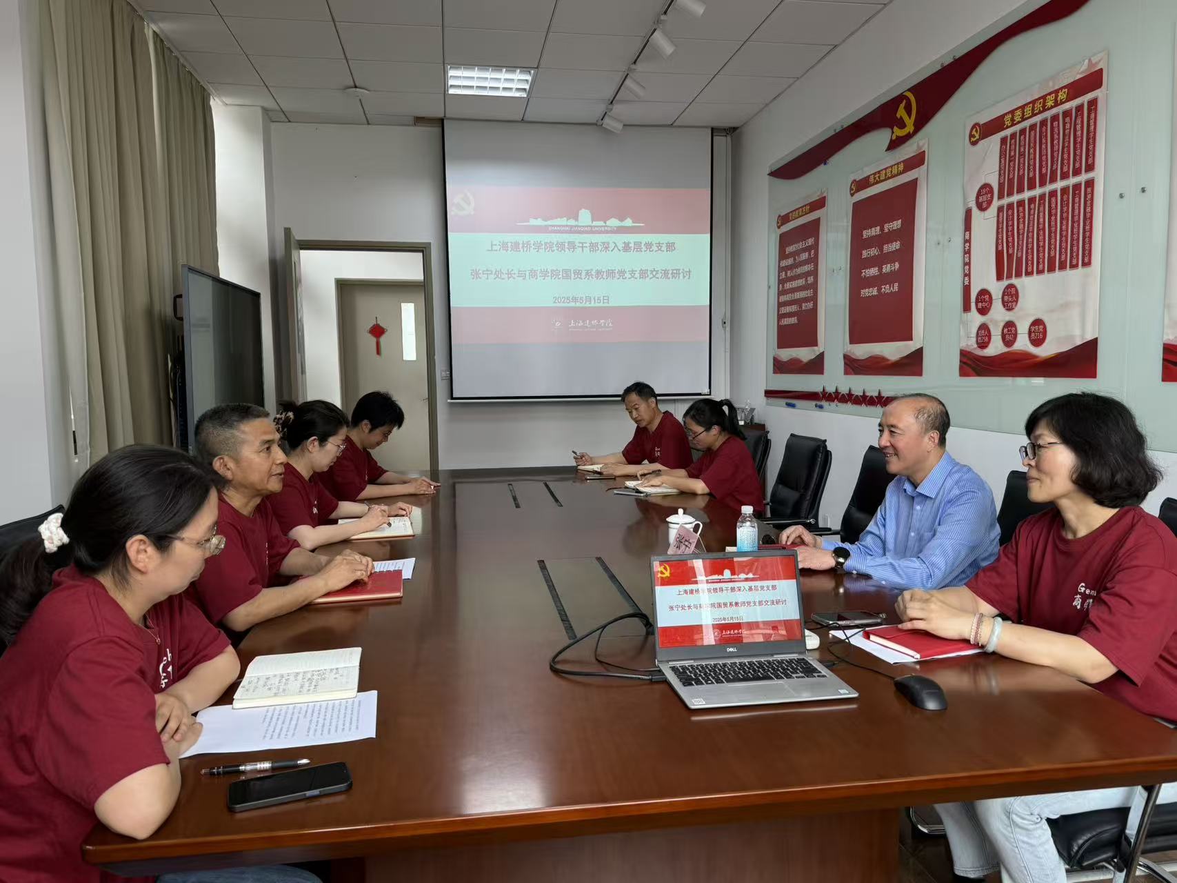 5月15日中午,校党委委员、人事组织处处长张宁出席中共上海建桥学院商学院国贸系教师党支部“学习贯彻习近平总书记关于党性重要论述”座谈会,张宁处长与出席座谈会的全体党员一道,就新形势下如何贯彻落实党性修养,教书育人、立德树人、继续建设好一流专业这一主题,与党员们进行了深入的沟通和交流。座谈会上,党员同志们回顾了习近平总书记关于党性修养重要论述精神和中央党校(国家行政学院)教育长张忠军教授的专题讲座视频主要内容,结合集中培训学习内容,交流了学习的心得体会,并结合我校当前和未来发展、围绕国际经济与贸易专业发展现状及未来展望,结合本职工作实际,就进一步加强党性修养、做好教书育人工作,进行了深入的理论学习和工作交流。听取了支部教师们的发言后,张宁处长结合学校及国际经济与贸易专业的实际情况,针对理论学习的重点,就加强党性修养、教书育人及一流专业建设等方面提出了指导性意见,并与党支部全体成员进行了深入的交流探讨。座谈会气氛热烈,大家深受启发和鼓舞。党员们一致认为,深入学习习近平总书记关于党性修养重要论述,为贯彻落实教育强国指明了方向,教育的成功与否,核心在于能否培养出符合社会科技经济发展需求的人才,