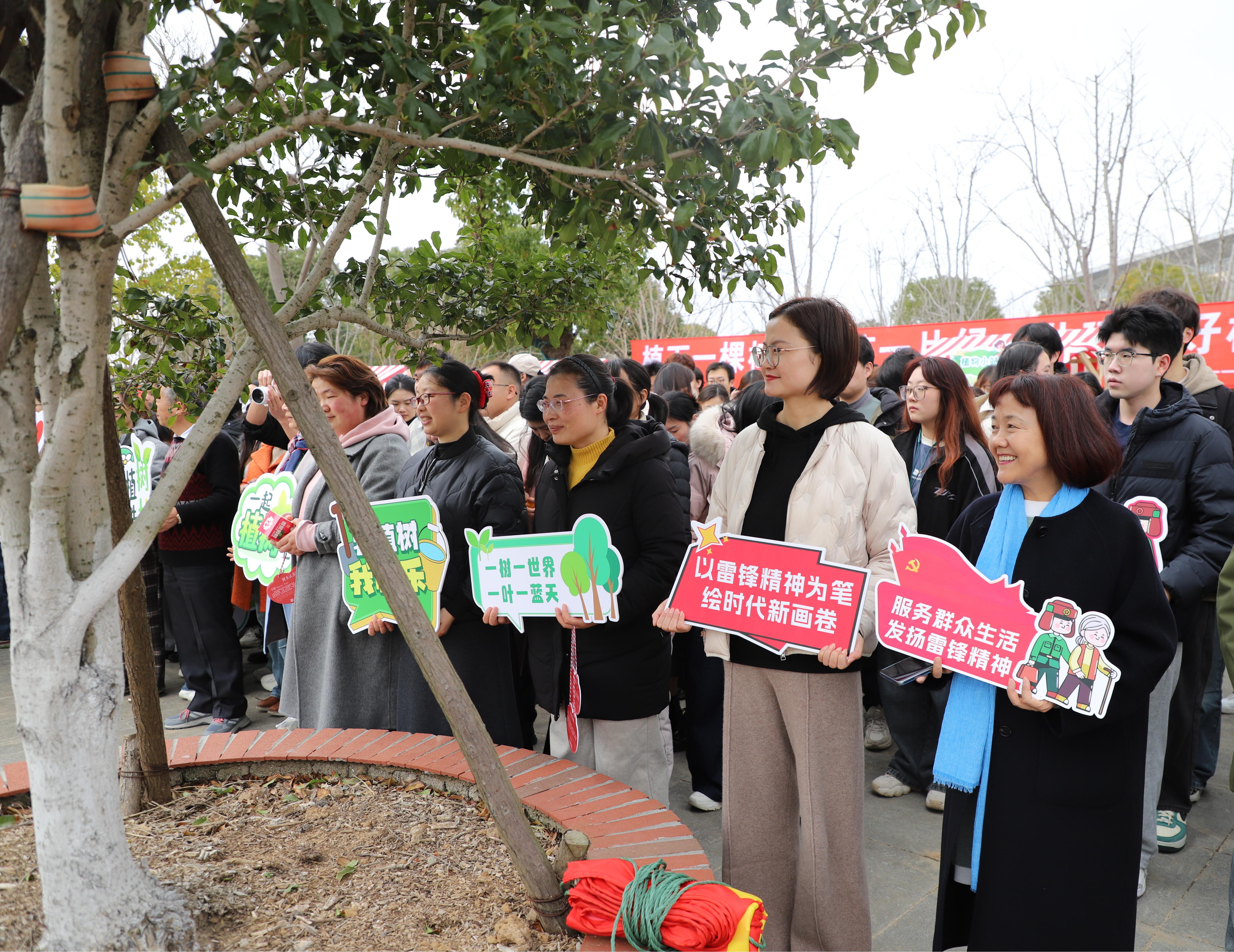 春风催新绿,育苗正当时。在第47个植树节来临之际,为深入贯彻落实习近平生态文明思想,为深入践行雷锋精神,倡导绿色生态文明意识,响应国家绿色发展号召,3月11日下午12:00,商学院党委书记刘爱香、副书记俞海燕、商学院团委、劳动教育指导老师和商学院学生代表遵循习近平总书记针对生态文明建设的基本的要求,积极参加学校组织的“美化校园”植树节活动。为校园环境增添一一抹新绿。在现场,党委书记刘爱香率先垂范,挥锨铲土,老师们也纷纷拿起工具热火朝天地投入植树中,商学院师生一起学习了植树的相关要求,展开了植树活动,大家热情高涨,分工协作,干劲十足,扶苗、铲土、培土、围堰……植树现场一片繁忙景象。同时,玲琅满目的摊位布置着宣传海报和绿植盲盒,吸引了众多师生驻足参与,志愿者们热情地向来往同学介绍植树节的意义,分享环保知识,用行动践行“植绿,爱绿,护绿”的理念。植树与宣传相结合,增强了大家的环保意识,让活动更加丰富多彩。春染大地万山绿,种树添绿植希望。此次植树节活动进一步提高商学院师生的环境保护意识,传递美丽校园、生态文明的理念。与此同时,商学院倡导大家都能够积极行动起来,让美化校园、美化环境成为我们生活日