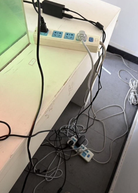 | 拖线板非新国标,房间在整顿中未张贴实验室相关信息 |