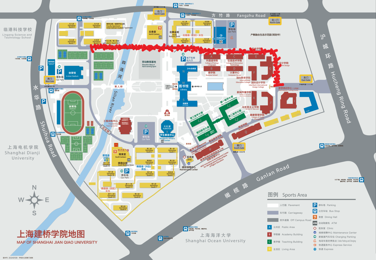 各二级学院、部门及相关单位:为更好利用方竹路新北门,尽最大可能实现人车分流,保障通行安全,在优化校门出行方式的同时更好地服务师生,现根据实际情况对相关安排作以下调整:1.10月8日(星期二)7时起,海大驾校门(方竹路919号)将作为驾校停车场车辆进出口,仅供停放车辆进出。2.方竹路新北门将主要用于师生人行进出的主要通道,及快递中心货运车辆进出,校内教职工车辆不再由此门进出。3.校内教职工非机动车辆,可从新北门非机动车专用进出口进校及统一停放于非机动车指定停车位。4.每周五(含放假前一日及假期最后一日)11:00-19:00,将开放南门(橄榄路1000号)供教职工车辆进出校、东门(沪城环路1111号)供教职工车辆离校。并开放驾校停车场供家长临时停车使用。5.原西门人行及车行进出通行方式不变。上海建桥学院后勤保卫处2024年10月7日