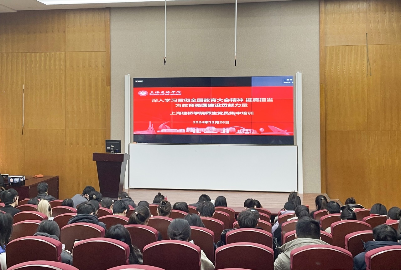 12月26日下午,上海建桥学院举办秋季学期第二次师生党员集中培训,集中学习教育部党组书记、部长怀进鹏主讲的“深入学习贯彻全国教育大会精神,挺膺担当,为教育强国建设贡献力量”视频课程。