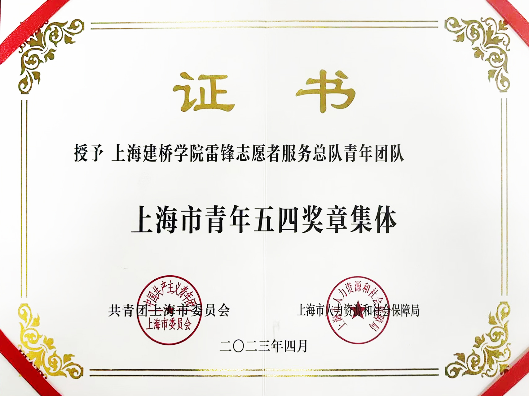 | 2023年4月 | 上海市青年五四集体奖章 |