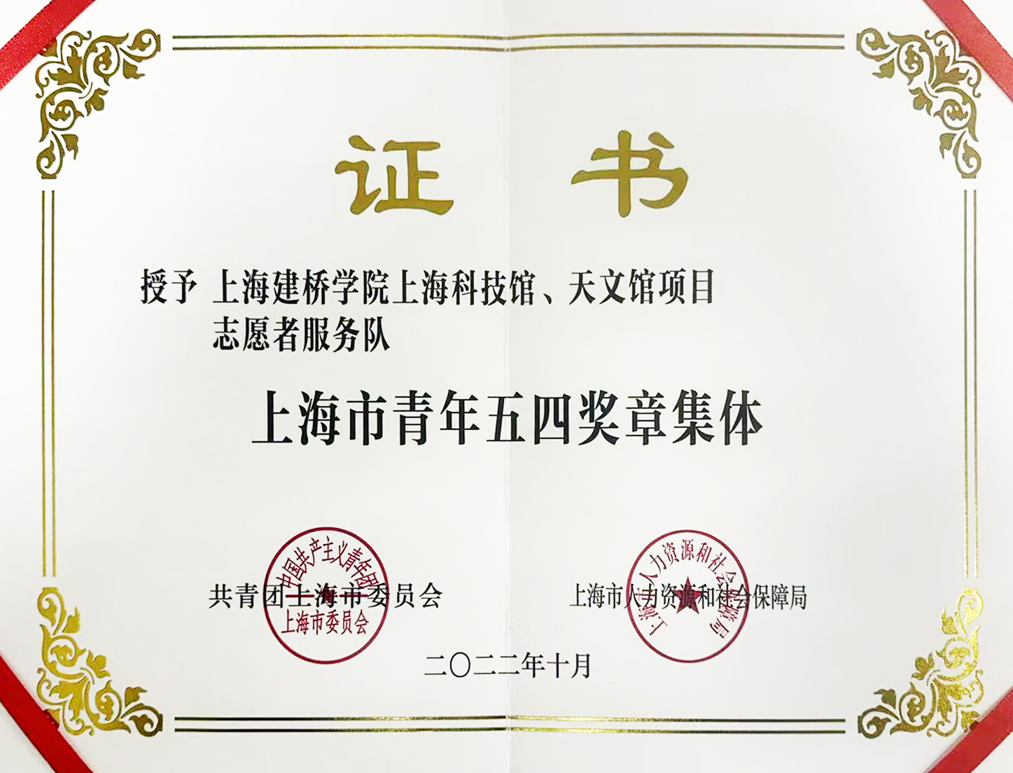 | 2022年10月 | 上海市青年五四集体奖章 |