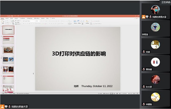 2022年10月13日下午,商学院和科研处联合举办了第82期博士论坛,疫情原因,本次论坛在腾讯会议平台进行。商学院陆晖博士做了题为“3D打印对供应链的影响”的学术报告。陆晖博士介绍了3D打印的发展及其本人在这个方向的研究背景、研究方法、研究成果。揭示了3D打印相对于传统制造技术的优势将为许多行业带来深远影响,其影响涉及整个产品生命周期及相应的供应链管理,包含产品设计研发、生产制造以及后期产品维护等。提出了3D打印对于具体供应链及产品的影响,在商业和学术上的研究仍未完善,有待进一步研究。
