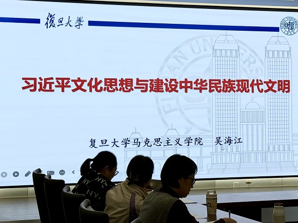 11月21日下午,应上海建桥学院马克思主义学院邀请,复旦大学马克思主义学院教授、博士生导师吴海江在思政创新中心147报告厅为“马克思主义理论大讲堂”第三讲作专题讲座。本次讲座也是马克思主义学院开展产教融合和学习贯彻党的二十届三中全会精神系列活动的重要组成部分。讲座由马克思主义学院副院长沈树永主持,马院全体教师参加。吴海江教授以《习近平文化思想与建设中华民族现代文明》为题,首先对习近平文化思想的几个理论问题进行了深入解读,剖析了其在新思想中的地位,以及与“第二个结合”和“文化主体性”的关联。其次,吴教授阐述了文化自觉、文化自信与文化主体性的区别和关联,分析了中国传统文化的特质及内涵,强调了文化主体性在“第二个结合”中的价值和意义。再次,吴教授系统讲述了文化与文明的关系及“文明”概念的流变,指出二者之间的关系及五大区别,回顾了“轴心时代”多元文明生成和西方“科技——工业文明”。最后,吴教授由“人类文明新形态”概念延伸至“中华民族现代文明”,深入解读了中国特色社会主义创造人类文明新形态所蕴含的内涵、特质以及开创意义,剖析了中华文明、中华民族现代文明与人类文明新形态三者之间的内在联系。讲座结束