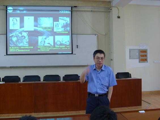 6月10日下午在2201,同济大学新能源汽车工程研究中心主任陈翌教授来我校为师生做了一场《从汽车发展历史看新能源汽车发展的未来》的讲座。讲座从世界上第一辆真正意义上的汽车、第一位汽车驾驶员和第一名汽车品牌代言人讲起,介绍了汽车的诞生、汽车的普及、汽车的个性化和多样化、战后的汽车世界、汽车运动及危机出现与应对等方面,用丰富的案例和有趣的视频结合形象而生动的语言讲述了人类汽车发展的历史