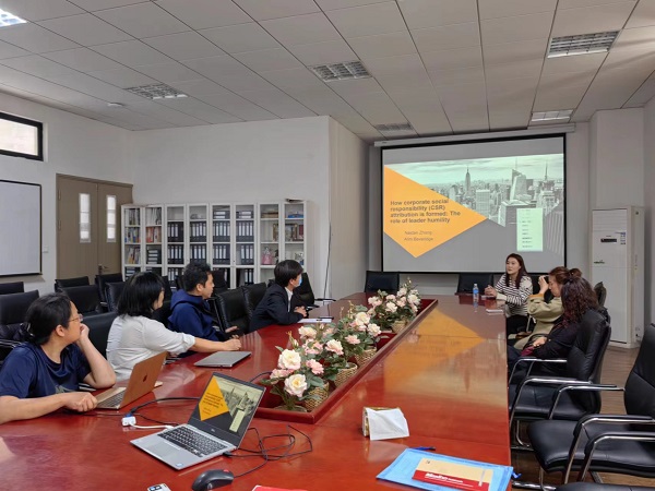 4月20日下午,国际商务研究中心和科研处联合举办了第87期博士论坛,本次论坛在商学院305会议室进行,商学院张乃丹博士做了题为“How stakeholders’ corporate social responsibility (CSR) attributions are formed: The role of leader humility”的学术讲座。张乃丹分享了自己的研究成果,即领导者谦逊是否以及如何影响利益相关者的社会责任归因。她详细介绍了自己做此研究的背景、研究内容、研究方法、研究结论等,条理清楚,内容详实。讲座完后,与会教师意犹未尽,纷纷提问,张乃丹一一作出了解答,大家交流的很是尽兴。