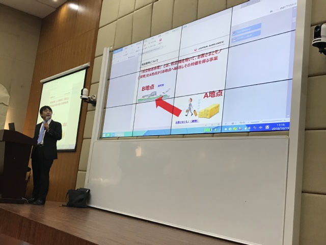 10月19日下午1点,第295期“百家讲坛”系列讲座在3教222教室举行,本次讲座以“日本航空业现状及其构架”为题,邀请日本航空上海分公司总务总监小林理先生主讲。日本航空上海分公司总务副经理陆隽女士、上海高校校企联盟叶维英老师、山盛谦吾先生出席,外国语学院党总支书记杨大亮教授出席讲座并致辞。讲座由日语系杨晓兴老师主持,许瑶瑶老师、贺亚茹老师及来自日语航空等专业的近80名学生参加。小林理,东京大学经济学专业毕业,2002年4月入职日本航空公司,2002-2004年任职于日本航空公司羽田机场国内线旅客部,2004-2008年任职于日本航空公司机场运营企划部,2008-2017年任职于日本航空公司劳务部,2017年8月赴任日本航空上海分公司,目前为日本航空上海分公司总务总监。本次讲座,小林先生深入浅出地介绍了航空运输业的定义、存在意义,世界和日本航空业发展现状、面临的机遇与挑战等。在这样的背景下,日本航空公司始终以“追求员工的身心身心幸福,为顾客提供最好的服务,提高企业价值,为社会进步发展做出贡献”为经营理念,制定企业中长期发展计划,向成为世界性的航空公司发起挑战。最后还向大家介绍了日本航空