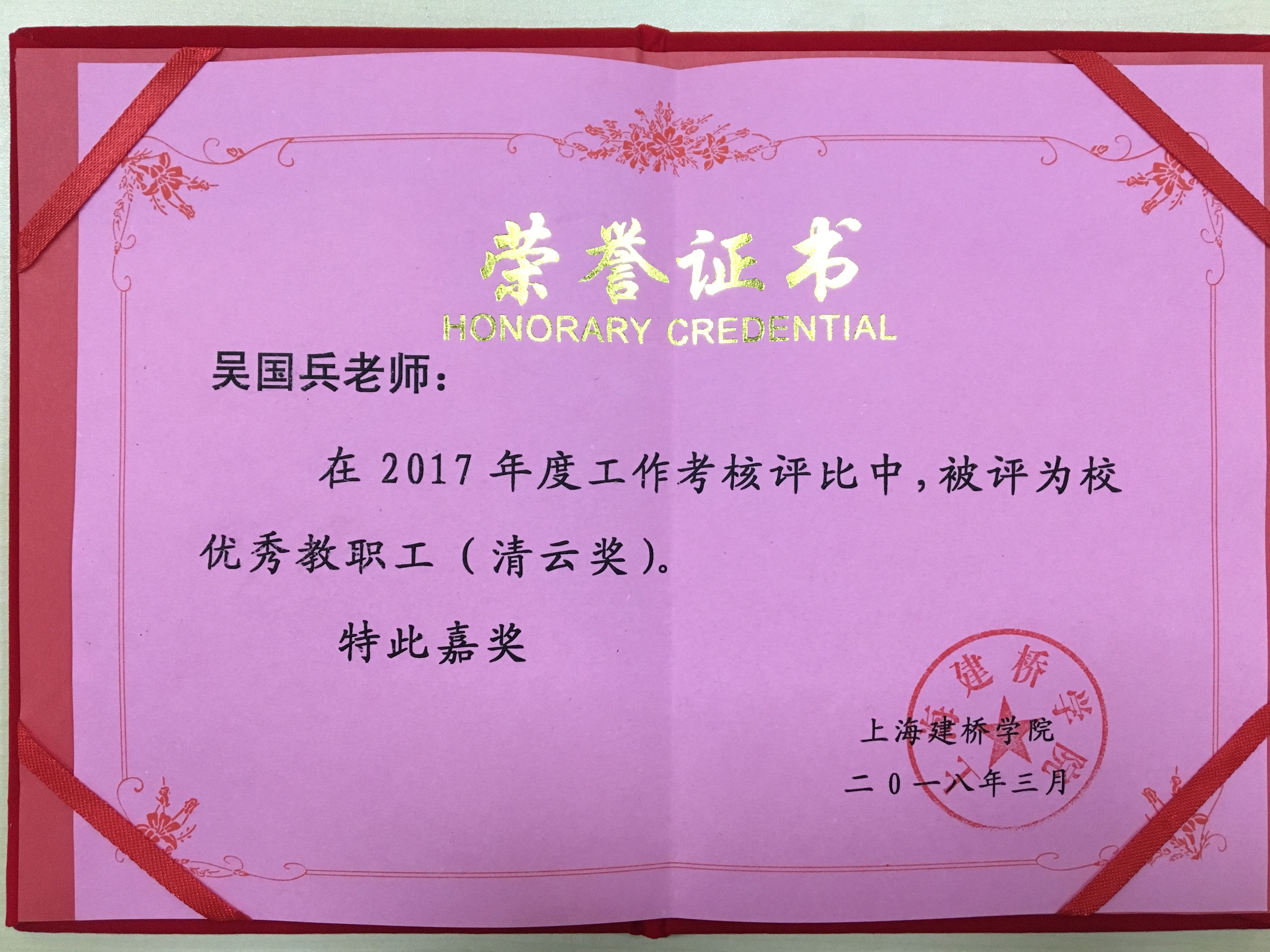 恭贺吴国兵老师荣获“清云奖”