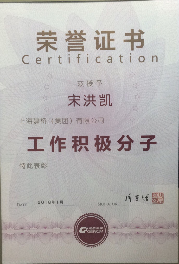恭贺宋洪凯老师获得“工作积极分子”荣誉称号
