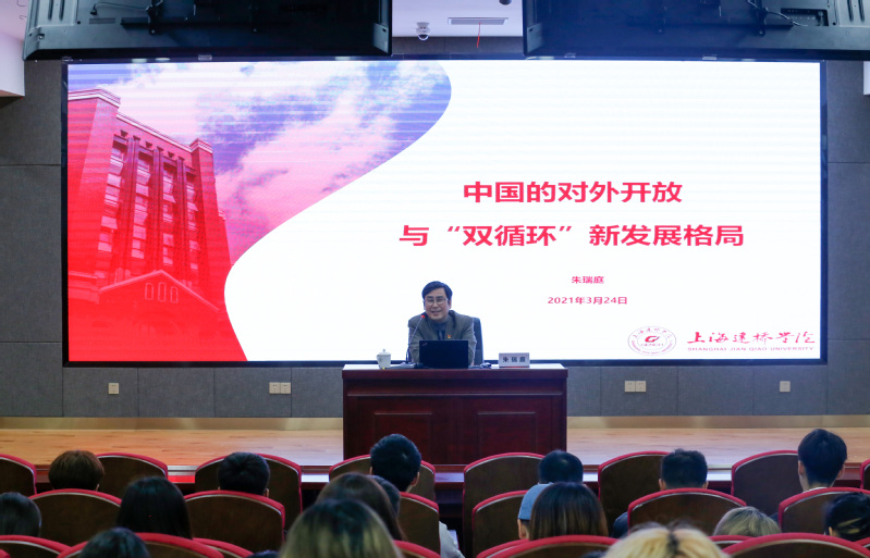 3月24日晚,一堂精彩的《中国的对外开放与‘双循环’新发展格局》形势与政策课在珠宝学院四楼报告厅开讲。2019级学生代表齐聚一堂,聚精会神地聆听校长朱瑞庭讲课。朱校长逻辑清晰、分析透彻,他主要从“开放是当代中国鲜明的时代标识”“从自贸试验区看中国的对外开放”和“构建‘双循环’新发展格局”三个方面开展授课,进行深入剖析和讲解。他指出,改革和开放相互促进,开放促繁荣促发展,通过对外开放,我国获得了更多推动发展所必需的资金、技术、资源、市场、人才乃至机遇,不断为经济发展注入了新活力、拓展新空间。中国奉行互利共赢的开放战略,不仅把世界的机遇变成了中国的机遇,更把中国的机遇打造成了世界的机遇,成为推动世界经济增长的重要动力源。朱校长强调,建设中国(上海)自由贸易试验区,是党中央作出的重大决策,是在新形势下推进改革开放的重大举措。我国坚持扩大内需这个战略基点,加快培育完整内需体系,把实施扩大内需战略同深化供给侧结构性改革有机结合起来,以创新驱动、高质量供给引领和创造新需求。畅通国内大循环,促进国内国际双循环,全面促进消费,拓展投资空间。朱校长希望身处临港新片区的同学们要时常走出去,要在实践中运用知