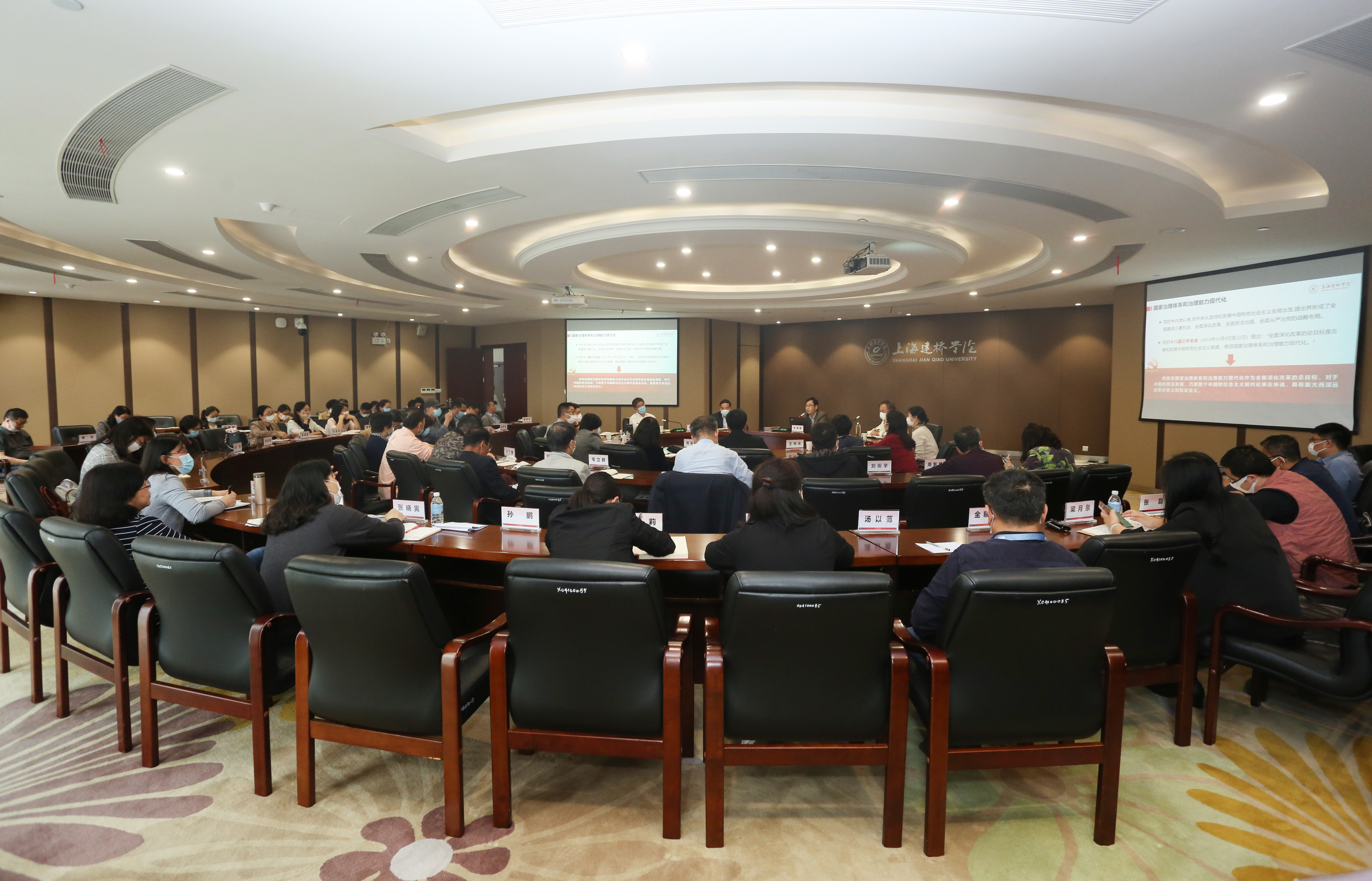 5月9日下午,根据上海建桥学院党委理论学习中心组2020年学习计划安排,学校举行党委理论学习中心组(扩大)学习会议,本次学习主题为“民办高校治理体系和治理能力建设”。全体校领导、党委委员、纪委委员、全体中层干部出席。党委书记江彦桥主持。学习会上,校长朱瑞庭从国家、高校、民办高校、上海建桥学院四个层次分析了治理体系和治理能力的相关问题。朱校长指出,民办高等教育是高等教育的重要组成部分,是教育改革的重要力量,是教育事业的重要增长点。民办高校现面临着内外部治理能力与体系的双重挑战,其活力在于充分发挥学校的体制与机制,这是民办学校最大的优势。上海建桥学院创办20年以来,在治理体系和治理能力建设方面开展了积极的探索和实践,为学校的发展提供了保障。这些探索与实践主要包括董事会领导、党政协同、校长负责、改革创新、依法治校、民主管理、社会监督和开放办学。接下来,学校将在治理体系和治理能力建设方面实现更高目标,构建学校治理的“四梁八柱”,为学校的长远目标和高质量发展提供保证。主要内容有高度重视董事会治理体系和治理能力建设,不断修订完善《上海建桥学院章程》,积极探索董事会领导下的党政协同和校长负责的实现形