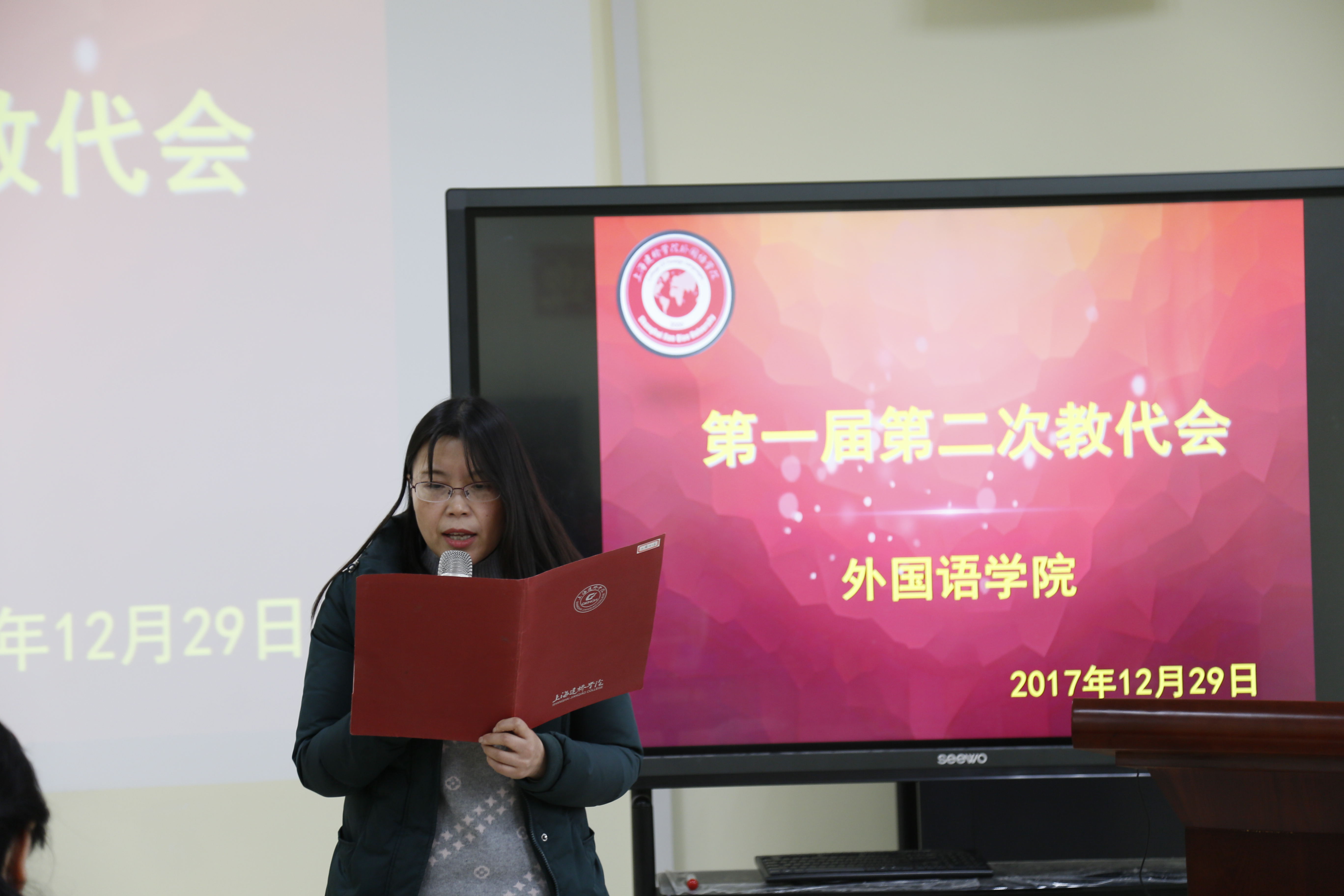 12月29日是2017年度最后一个工作日,当天下午外国语学院在9129教室隆重召开一届二次教职工代表大会,会议由院党总支副书记李雷主持。