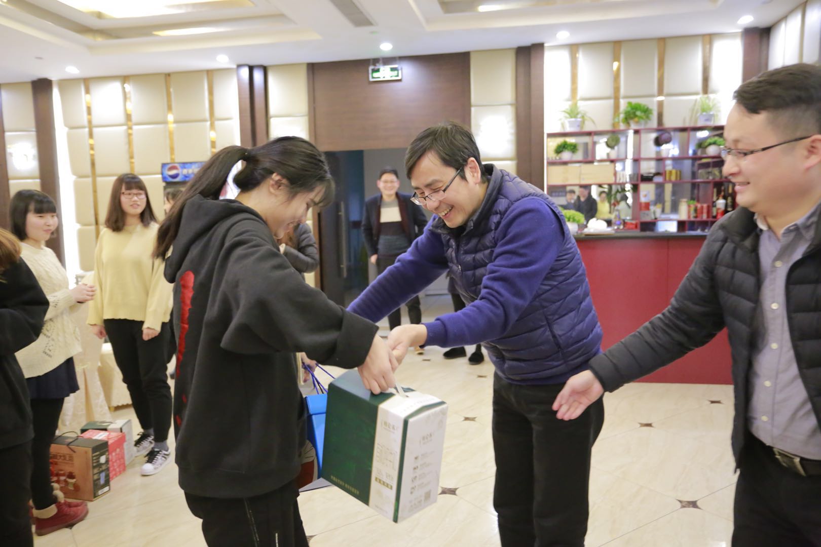 这份校长们暖心而特别的“胃”问,让因学业、实习、距离而无法回家或推迟回家的同学有了一份别样的惊喜。2015级护理专业学生陆柯柯说“学校的年夜饭很丰盛,校长烧的鸡翅不一般,礼盒拎的手软。”