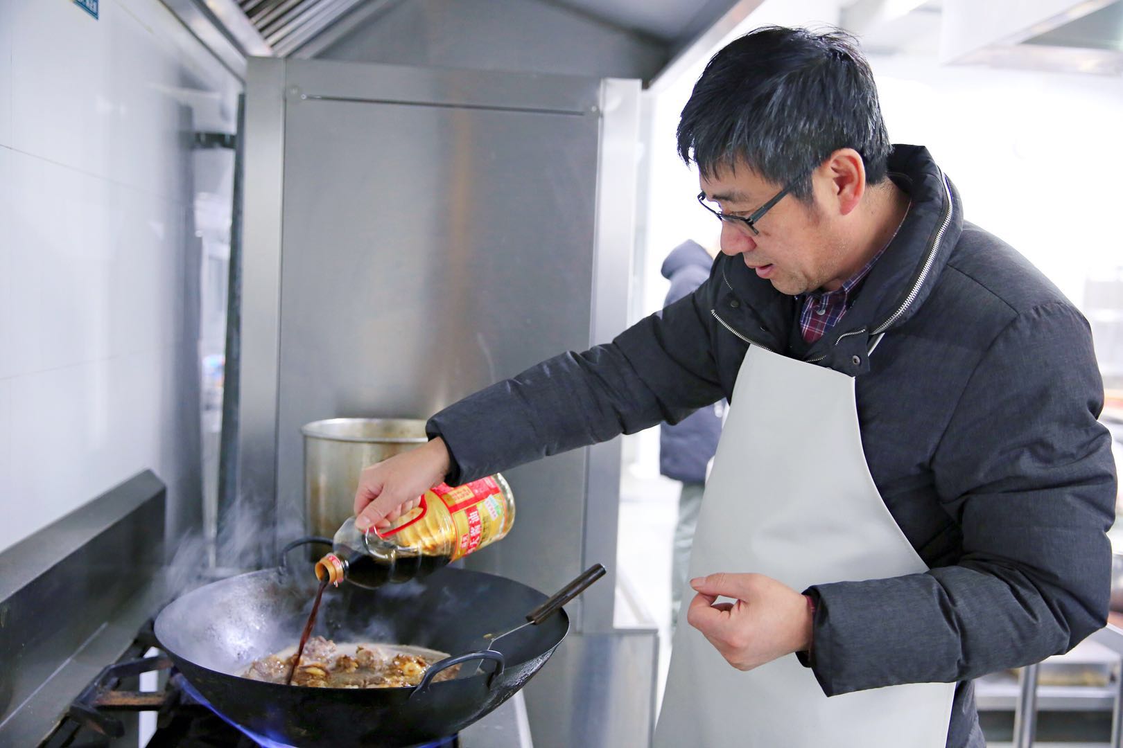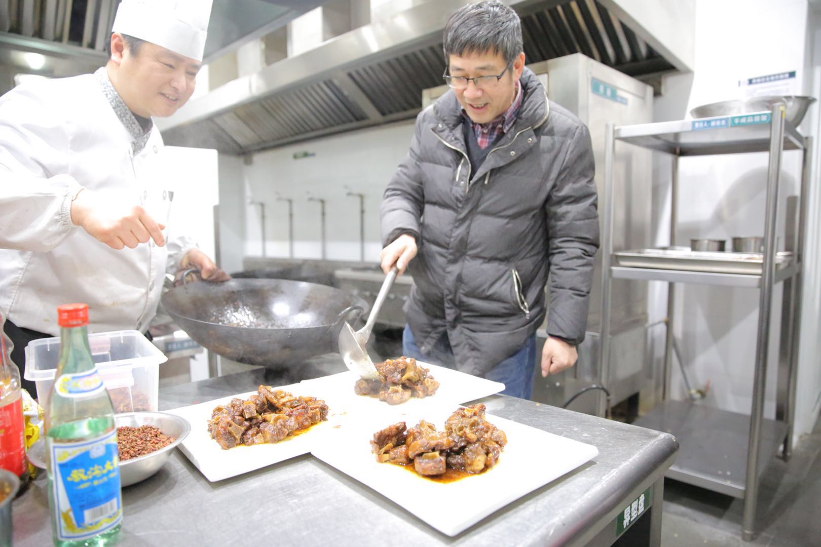 因为工作忙碌,平时很少有机会给家人烧菜的朱瑞庭校长表示,自己的红烧鸡翅虽然不一定合每个同学的口味,但是为同学下厨很有意义。俞晓光副校长则自带采购佐料,为同学们端上熬煮了三小时的红烧牛尾,要让他们吃到自己烹饪的最地道的美味。