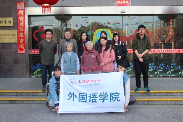 3月4号中午,外国语学院志愿者代表们在学校雷锋像前参加了2018年上海建桥学院雷锋志愿者活动出征仪式。仪式结束后,由学院党总支副书记李雷带领志愿者们赴惠南惠颐养护院看望老人。到达养护院后,受到了院方人员的热烈欢迎。由于天气原因,当天地面非常湿滑,志愿者们刚进养护院,就看到一位拄着拐杖的老人要出来晒太阳,老人的行动非常困难,志愿者们看到后迅速走过去搀扶老人走到院子里。志愿者们帮老人打扫了院子、陪老人们聊天,还带来了不少慰问品分给老人们,老人们脸上洋溢着幸福的笑容,纷纷表示感谢。