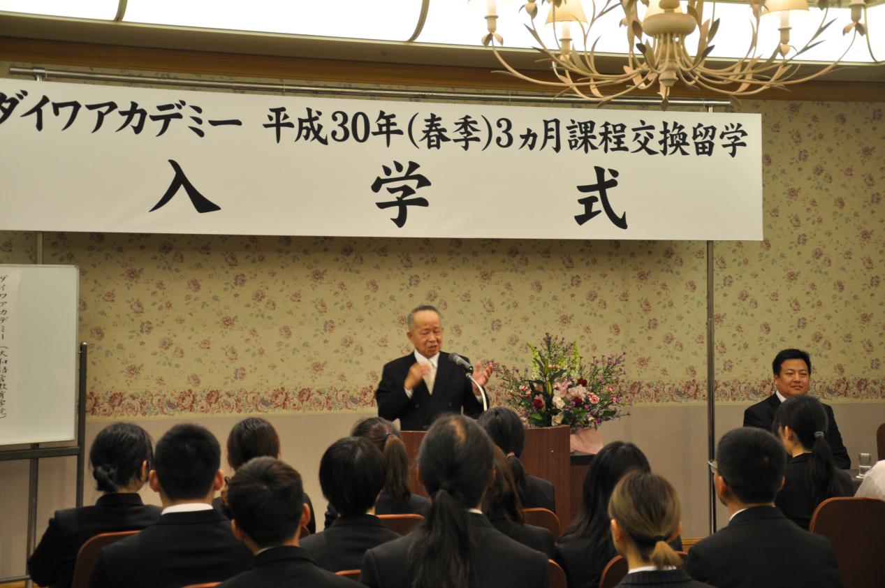 3月5日上午10点,大和语言教育学校平成30年(春季)三个月短期交换留学开学式隆重举行。大阪语言教育学校的吉村校长,苏德昌副校长(著名数学家苏步青之子,日本奈良大学名誉教授,复旦大学前教授),刘彦君副校长及各任课老师出席,全体短期生参加了入学式。