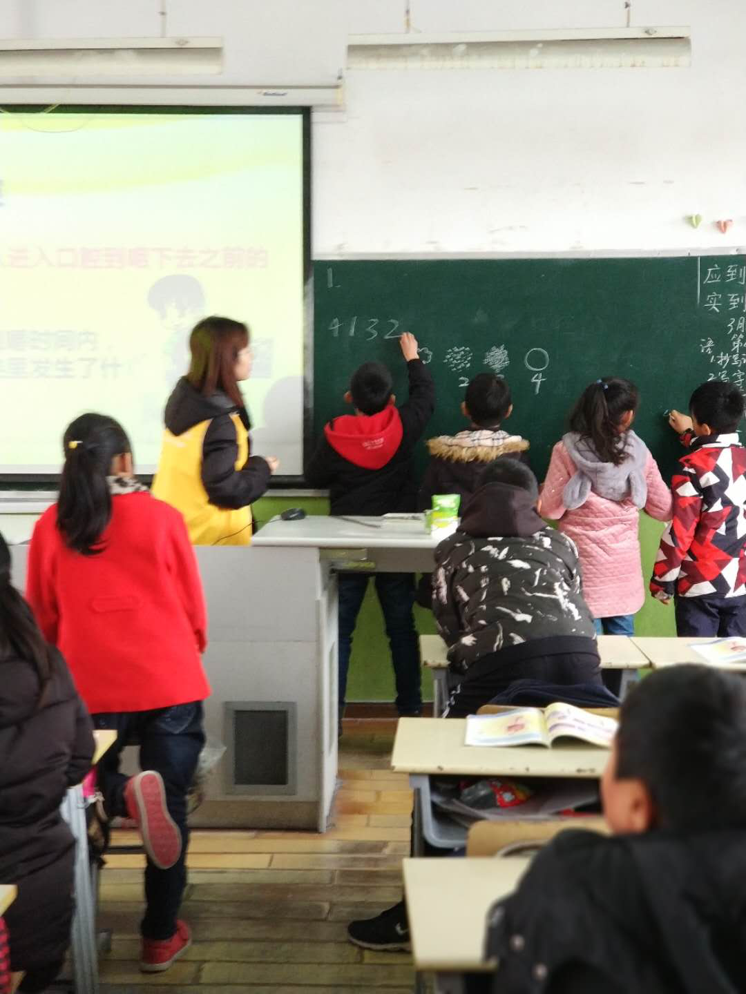 在为四年级的孩子们上人体常识课时,志愿者向小朋友们提问食物在体内的消化过程,小朋友们都非常踊跃的上台答题。课程期间,小朋友们也都认真听课。