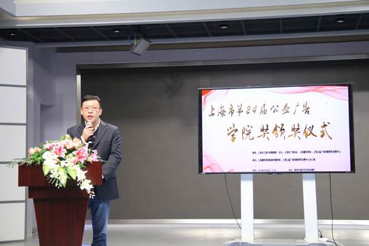 3月30日,上海国际广告节活动·上海市广告协会第24届公益广告学院奖颁奖典礼在我校新闻传播学院演播厅举行。大会对上海市第24届公益广告学院奖获奖者进行了表彰。上海市广告协会会长孔祥毅,上海市工商行政管理局广告监督管理处副处长李华,我校党委书记江彦桥,副校长周健儿出席颁奖典礼。上海公益广告创新研究发展中心常务副主任、我校新闻传播学院主持工作副院长冯修文主持颁奖仪式。