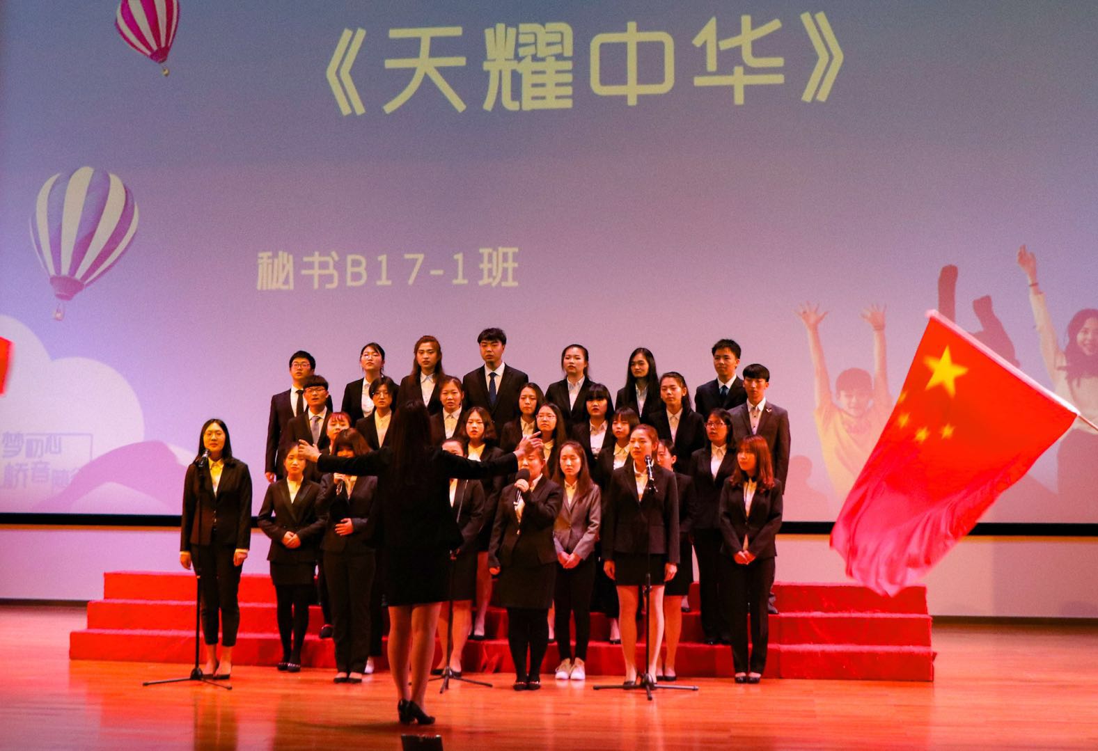 紧接着,比赛正式开始。伴随着慷慨激昂的旋律,男女声整齐而洪亮,这是由17级广告系带来的红歌演绎《保卫黄河》和青春曲目《倔强》。接着,17级新闻系为同学们带来《歌唱祖国》和《再见》,独特的古筝演奏和女声领唱为节目表演增添了不少亮点。由17级新闻系(全媒体采集与制作)演绎的是家喻户晓的《团结就是力量》和《同桌的你》。17级网络与新媒体带来《没有共产党就没有新中国》和《北京东路的日子》,精心改编过的《北京东路的日子》,体现出他们的参赛热情以及满满的诚意。由17级传播系呈现的《军港之夜》和《外婆的澎湖湾》,温暖的歌声响起围绕四周,唤起同学们的丝丝柔情。比赛最后,由17级秘书系带来《天耀中华》和《奔跑》,在演绎《天耀中华》时,挥舞国旗的节目安排表达了同学们对祖国深深的热爱。