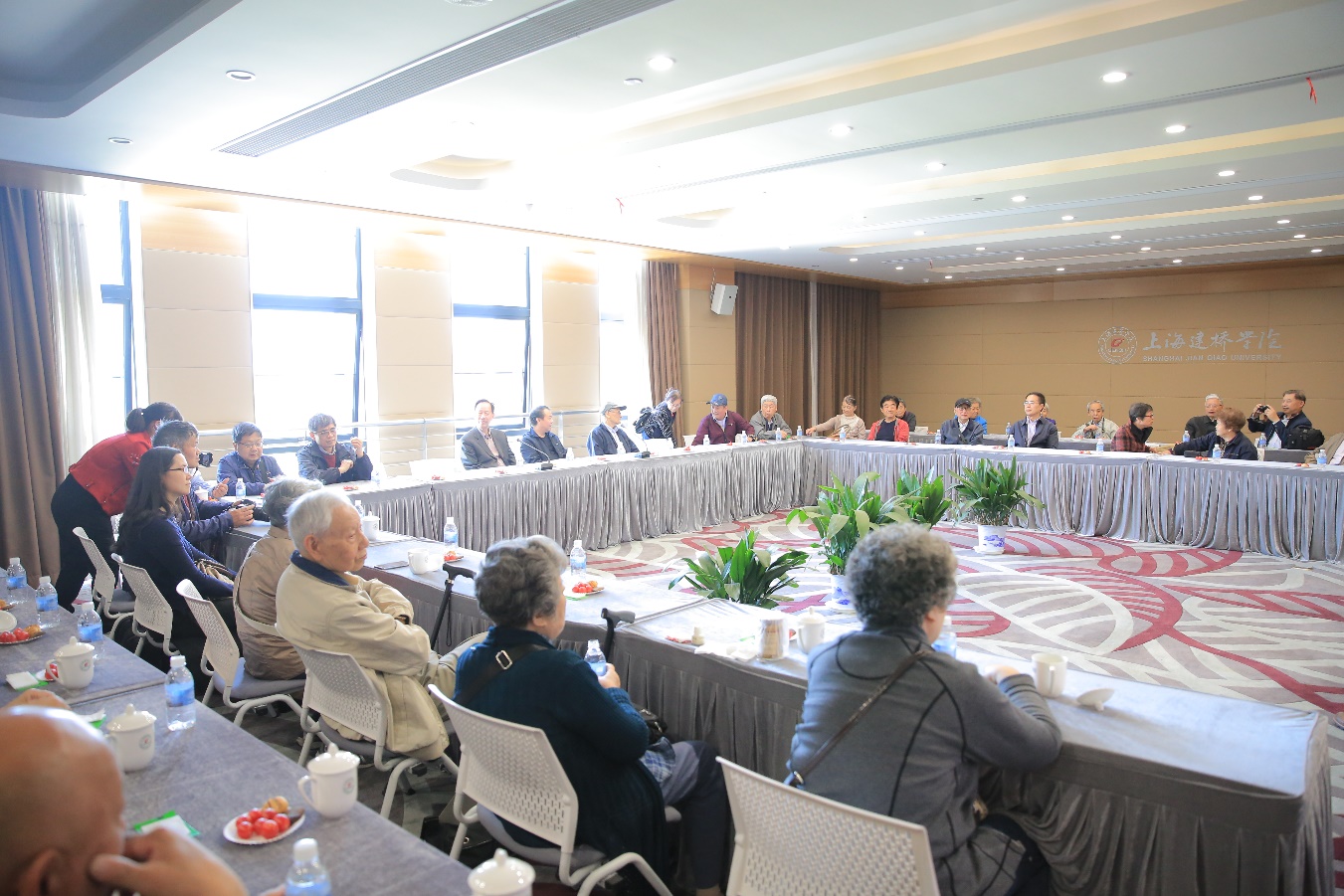 4月26日,上海市教育考试院老领导在建桥集团原党委书记、董事长助理金旦生的陪同下来校参观访问。我校董事长周星增,副董事长黄清云,副校长俞晓光在图书馆M617接待老领导一行。