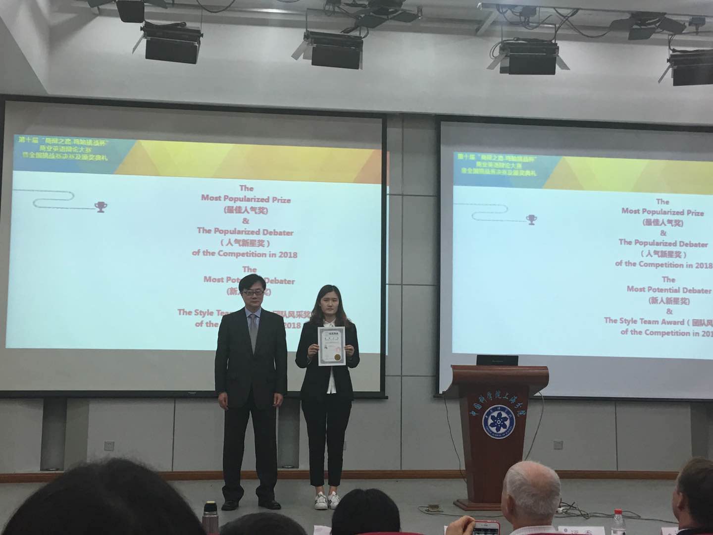 5月13日,第十届“商辩之路,鸣勉挑战杯”商业英语辩论大赛在中国科学院上海分院中科大厦第一报告厅落下帷幕,我校商学院国贸B16-3姚洁玙,信息技术学院软件大唐B16-1何鹏亮,软件大唐B16-2黄维嘉,艺术设计学院环艺B16-1倪珂靖等四名学生组成的DIVERGENT队一路过关斩将,最终荣获大赛三等奖,黄维嘉获得本届大赛的最佳人气奖。