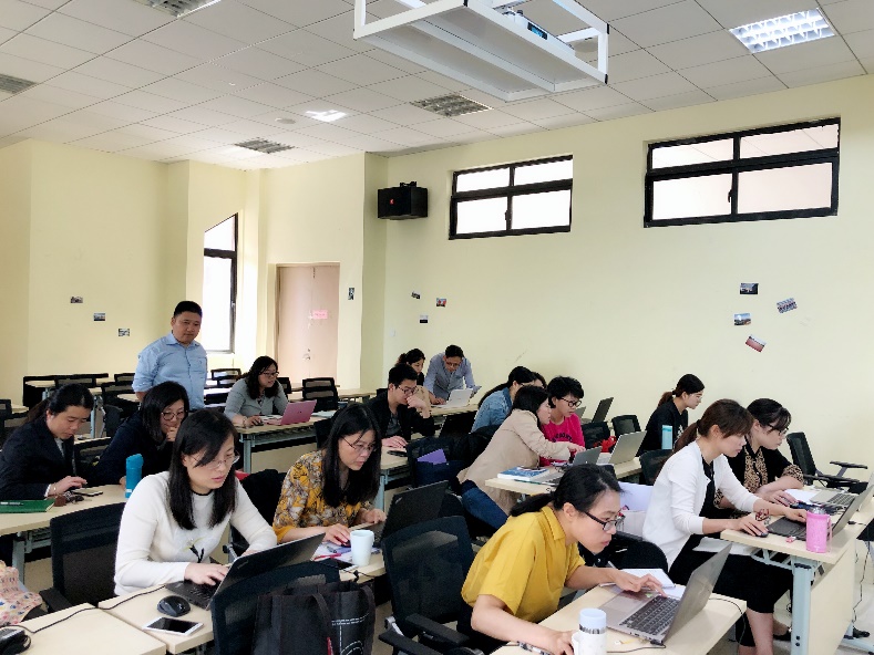 培训活动中,上海外国语大学博士、上海大学戴朝晖副教授首先从理论角度梳理了扎根理论的定义和发展,介绍了编码类型、理论抽样与饱和、整合类属形成理论的步骤等等,展示了NVivo应用的基本概念和理论基础。随后,戴朝晖副教授以集中讲授、小组讨论、个人操作的方式,围绕“语言学中质性分析软件NVivo 12 Plus的应用的实践操作”详细介绍了NVivo 12 Plus在文献综述研究、开放性问卷处理与分析、访谈资料处理与分析中的具体运用。上海外国语大学刘辉博士以及马牧青博士在该过程中不断对老师们的操作进行相应的指导,以期每位老师都能做到学会运用该软件来分析具体数据。最后,马牧青博士通过已发表的论文以及自己的研究成果展示了NVivo在论文写作中的应用。刘辉博士对此次培训会的内容作了总结,希望老师们能把这次的培训当做质性研究的起点,在以后的科研工作中继续学习并不断深入。