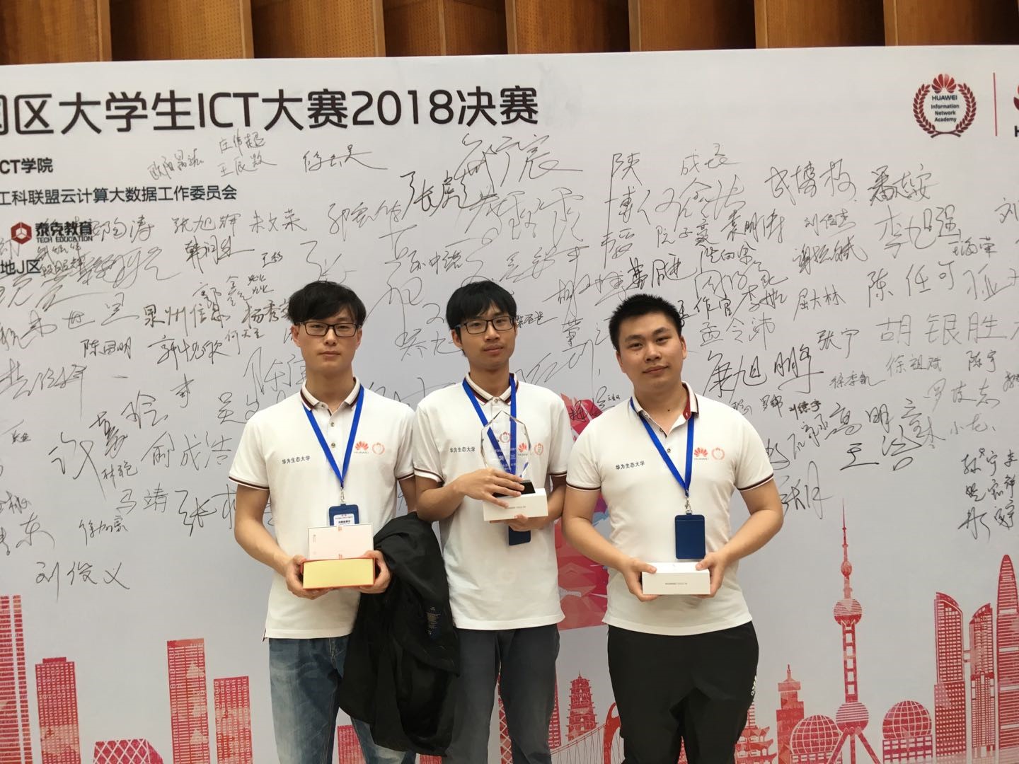 5月12日-13日,第三届华为中国区大学生ICT大赛决赛在华为深圳总部举行。我校信息技术学院网络工程系3名学生朱文荣、张旭辉、郭宏伟分别以上海赛区一、二、三等奖的优异成绩组队,晋级全国决赛,与全国144名选手、48组参赛队同台竞技,最终获得全国决赛三等奖。