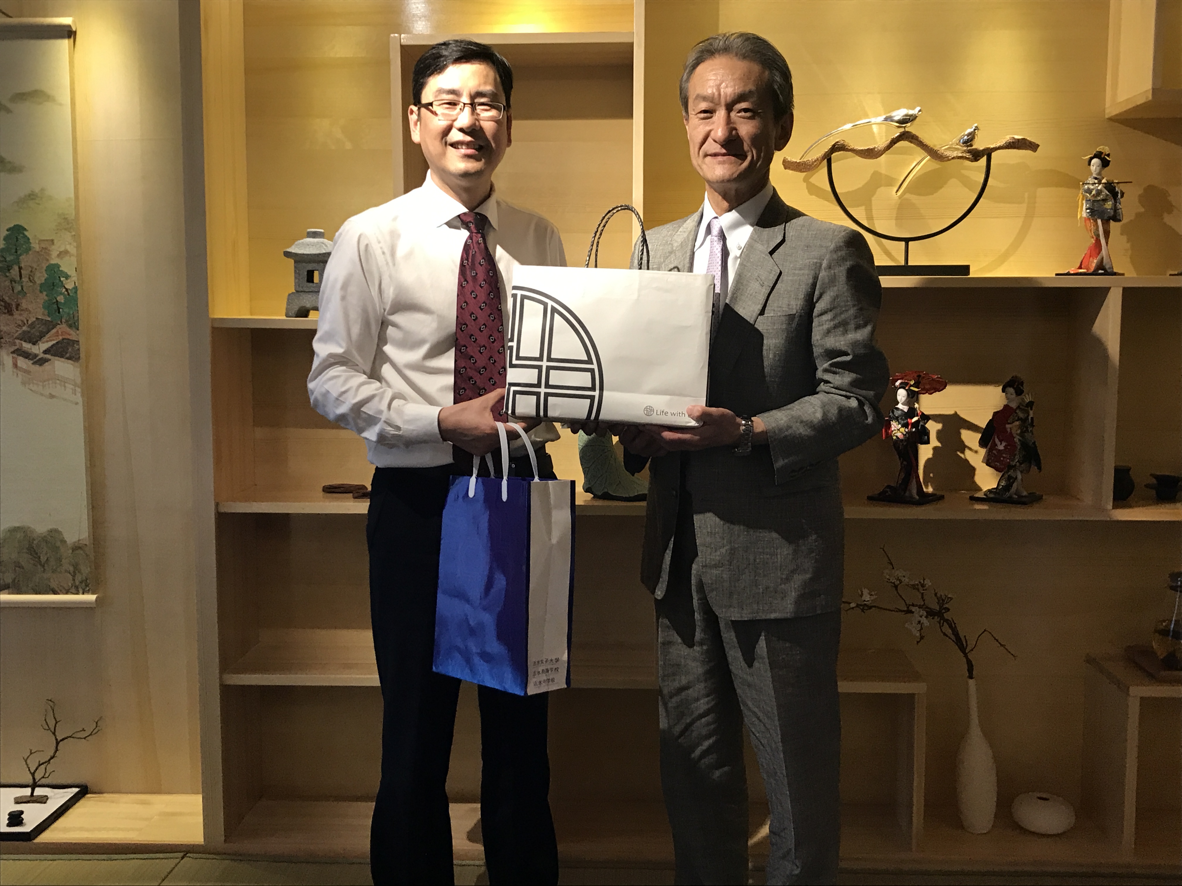 5月15日下午,日本长崎活水女子大学校长汤口隆司(Yuguchi·Takashi)来校交流访问,朱瑞庭校长在图书馆日本文化活动中心M516会见来宾一行。外国语学院日语系主任章虹、对外交流办公室副主任梁月泉等陪同接待。
