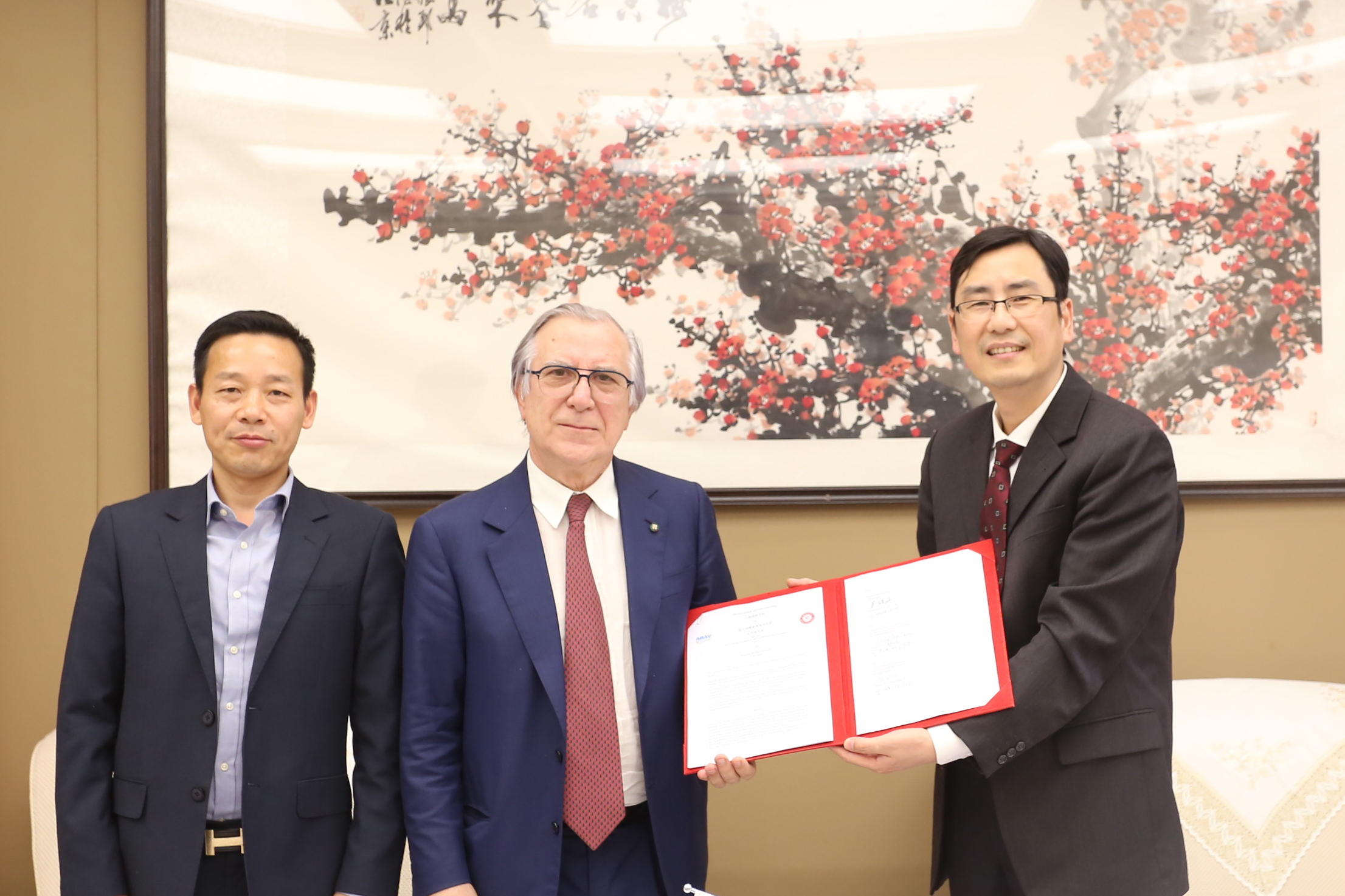 5月23日下午,意大利维泰博美术学院校长、ANINSEL教育协会会长Luigi Sepiacci等一行来校访问。校长朱瑞庭在图书馆S410会见来宾一行。珠宝学院院长李牧、艺术设计学院副院长葛洪波陪同接待。