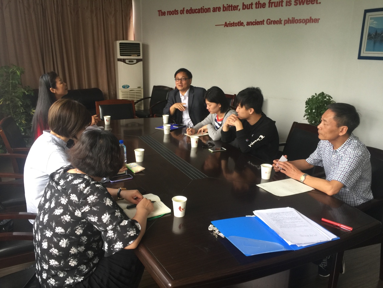 5月24日,由外国语学院院办主任董显洋带队,副主任蒋瑾,语言实验中心主任张赟岳以及办公室其他一行共六人赴湖州师范学院外国语学院学习交流。