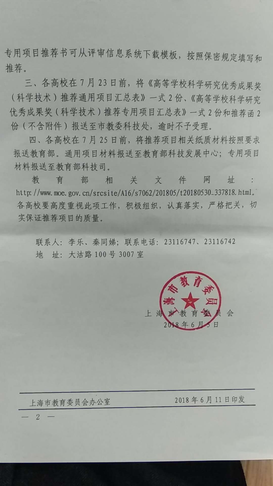 附件1、上海市教育委员会关于做好2018年度高等学校科学研究优秀成果奖推荐工作的通知