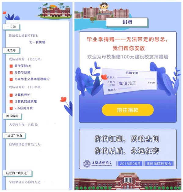 校友会副秘书长何泽媛老师随即介绍了校友会的具体工作和召集人的工作制度。从2018届开始,校友会将为召集人建立一个群,作为2018届校友召集人工作联络群。此外,校友会联合校长办公室、信息化办公室为每一个毕业生准备了一张特别的校友卡。这张校友卡不会丢失也不会过期,只要回到校园就可以继续消费和借阅图书。同时毕业生还可以看到一份独一无二的数据分析报告,其中整合了他们四年学校生活的各种数据,称之为“桥见青春”。