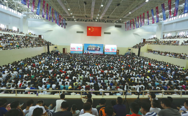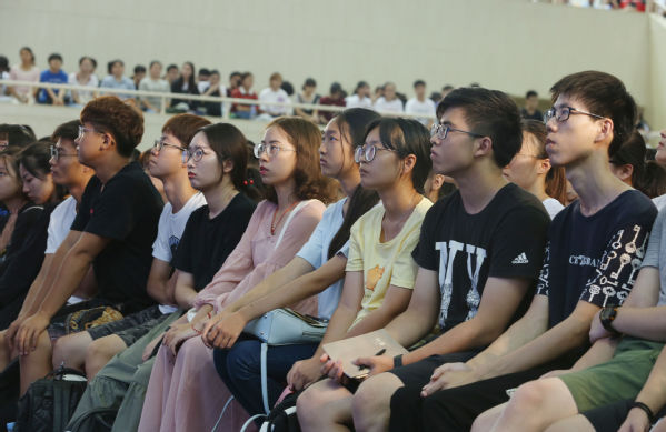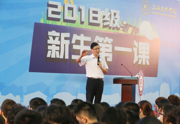 9月1日下午,校长朱瑞庭在校体育馆为我校2018级全体新生主讲题为《走进建桥 雕琢人生》的入学“第一课”,5400多名新生通过现场和视频转播聆听了“第一课”。校长助理陈伟主持开讲仪式。