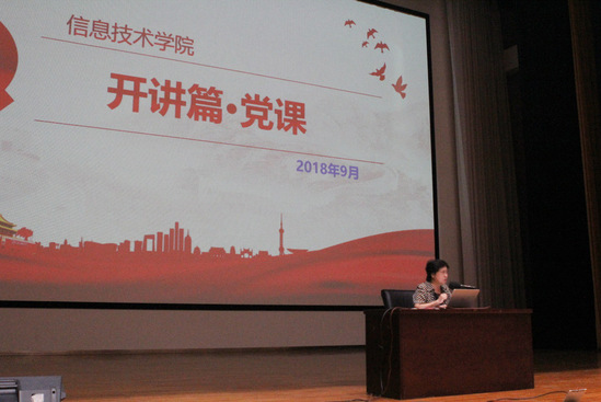 讲座伊始,我院分管学生党建中心的章连英从入党的基本条件以及入党材料的介绍引入,向新生们具体介绍了入党的整个流程。章老师认为入党并非是一蹴而就的,一旦选择了入党,就要在学习生活中严格要求自己,不懈追求。要树立正确的人生观、价值观、世界观,养成良好的生活作息习惯,带动周围同学一同进步。最后,章老师以北京大学的迎新讲话视频作为结尾,激励在场的每一位新生在大学生活中积极进取,不断努力。