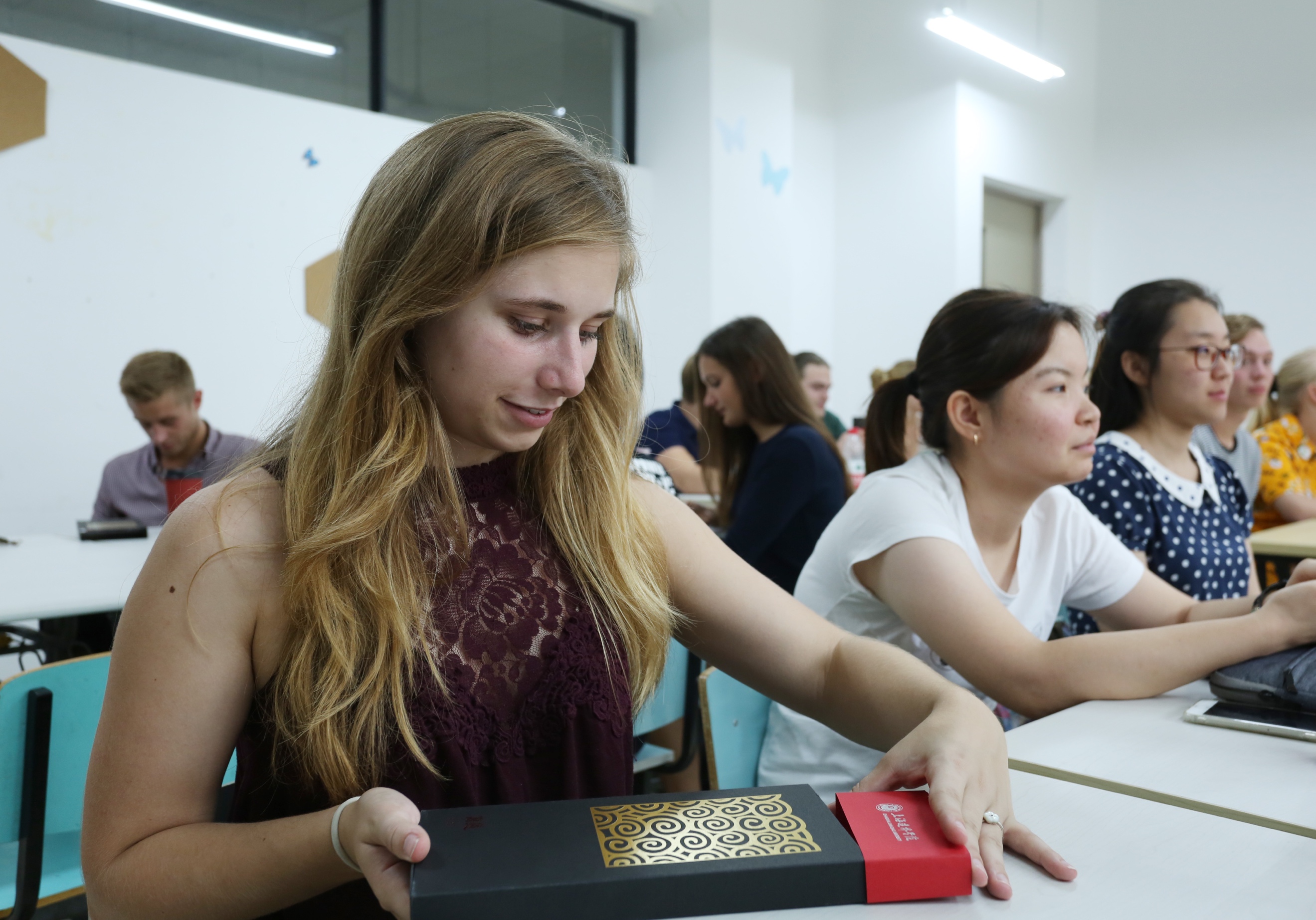在开班仪式上,首先副校长周健儿表示非常欢迎丹麦学生来到上海建桥学院,建桥学院为他们的到来准备了精心的课程与活动,衷心祝愿他们在中国度过一个非常愉快的学期。随后,周校长向奥胡斯商学院的老师和同学送上了一份来自于建桥的浓情问候。