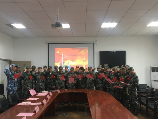 首先宣读入伍新兵名单,并为入伍新兵佩带大红花。接着,退伍老兵代表2015级学生姚贺久发表感言,他表示部队是一个大熔炉,激励新兵锐意进取,发扬敢吃苦、不怕苦的精神。即将入伍的新兵代表2017级学生徐迪发表自己的感想,他认为我们正值青春,坚定理想信念,为了中华民族的百年富强梦而不懈奋斗。新兵辅导员姚理想为23名新兵送去满满的祝福,希望新兵们发挥自己专长,为部队建设作积极贡献。