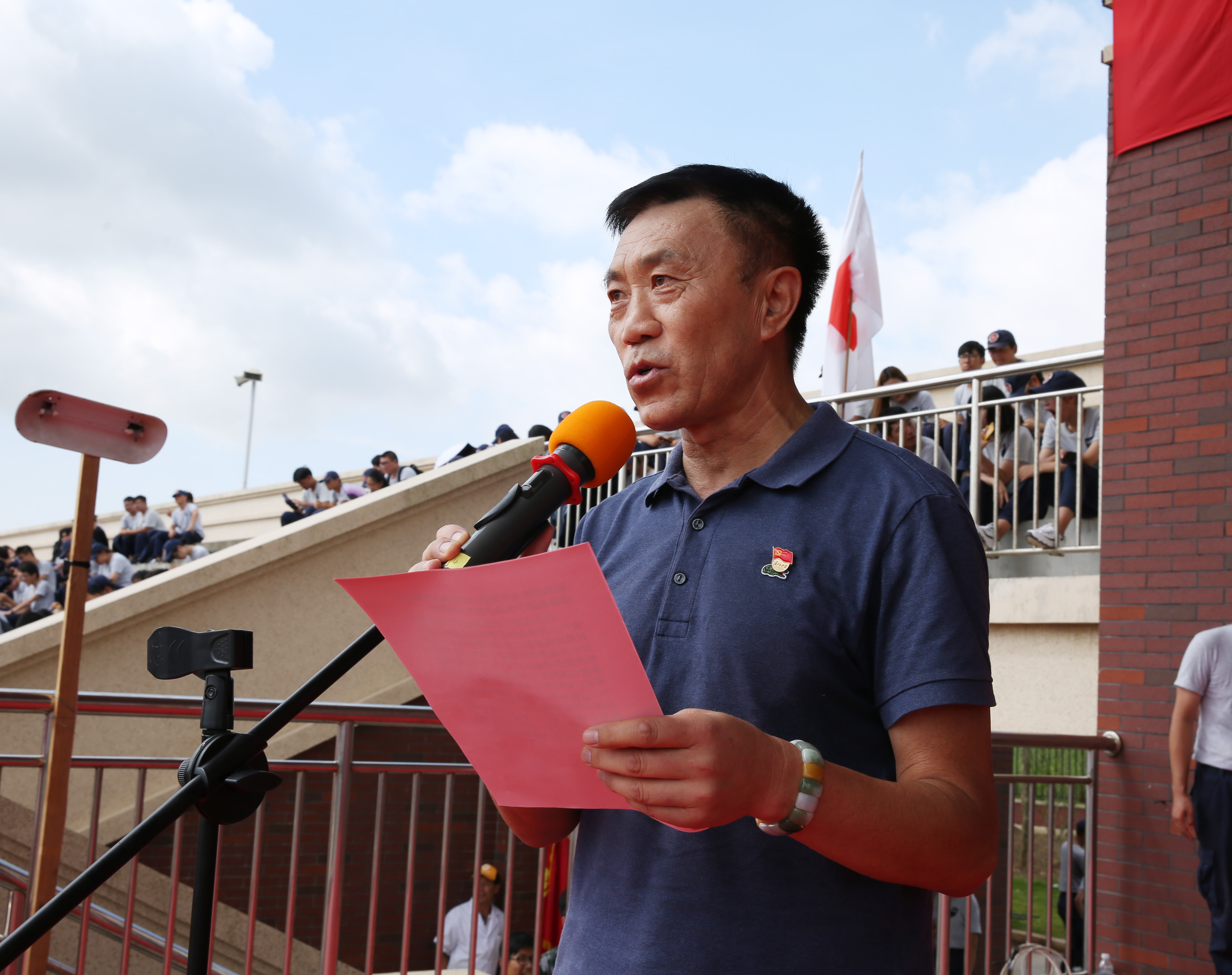 大会在庄严的国歌声中拉开帷幕。首先,董事长周星增检阅军训队伍。检阅完毕,标兵就位,分列式开始。同学们一个个喊着高亢洪亮的口号,迈着整齐有力的步伐经过主席台前,赢得了师生的阵阵掌声。阅兵仪式结束之后,同学们还带来了军体拳和刺杀操的表演,充分展现我校新生的飒爽英姿。