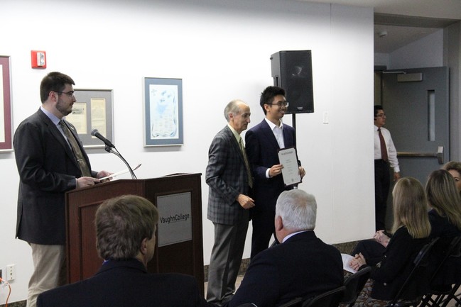 Vaughn College’s top scholars were recognized in the Academic Honors Awards Ceremony on Thursday, September 20 in the main lobby. Honors for the Spring 2018 Faculty, Dean and President’s List were given for academic achievements through achieving a high-grade point average. Parents and families cheered as recent graduates and current students received recognition from chairs of the departments.