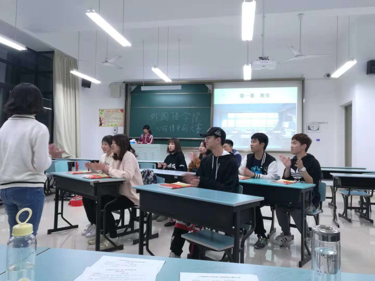 11月1日晚,外国语学院在二教305室组织2018级学生进行了以“换位思考,互相理解,互助关爱”为主题心理情景剧比赛,外国语学院心理工作负责人赵磊老师主持,外国语学院党总支副书记李雷老师、辅导员朱浩祯、黄梦佳、袁月、赵磊担任评委。