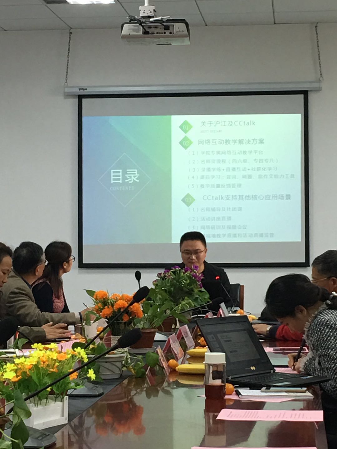 随后,浙江传媒学院大外部副主任施建华副教授、上海外国语大学贤达经济人文学院杨晓婷老师分别就各自学校i-test的使用情况进行了宝贵的经验分享。外研社赵怡斐老师针对我校17级非英语专业学生在10月31日-11月1日通过i-test平台进行无纸化四、六级模拟考试的情况做汇报、分析,并就全国信息化大学英语教学改革情况做简要介绍。秦尚兵详细介绍沪江一站式“网络互动教学”平台建设规划方案。针对与会专家、同行等的经验分享,教务处副处长周荣玲老师表示教务处会大力支持大英部英语教学改革,要求老师们对此三年行动方案要进一步深入考虑,指出改革教学内容才是教学改革的关键所在,并强调教学改革工作应以各学院为工作小组,安排专、兼职老师到各学院中去,积极参与信息化教学改革。