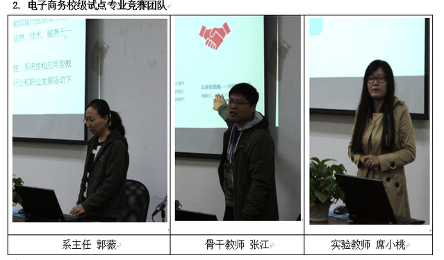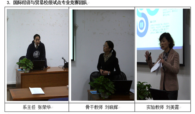 按照比赛要求,每个专业竞赛团队由三人组成,分别是系主任说专业,参加应用型专业建设能力比赛项目;骨干教师说课程,参加应用型课程建设能力比赛项目;实践教学中心主任说实践教学,参加实践教学建设能力比赛项目。