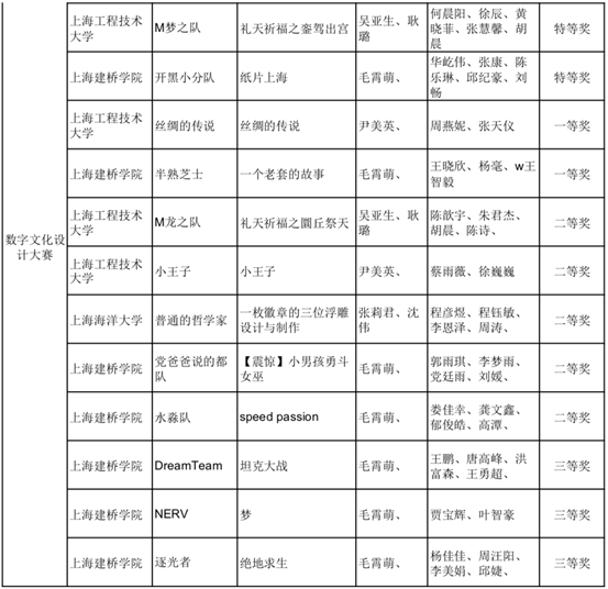 11月5日,由科技部、教育部、国家制造业信息化中心共同指导,国家制造业信息化培训中心主办的2018年全国三维数字化创新设计大赛(简称全国“3D大赛”)结束了复赛评审,由信息技术学院毛霄萌老师指导的数字媒体技术系学生在此次复赛中获得上海赛区特等奖一项,一等奖一项,二等奖两项,三等奖三项的好成绩。特等奖参赛团队(华屹伟、张康、陈乐琳、邱纪豪、刘畅)将于近期由指导老师带领参加全国总决赛。
