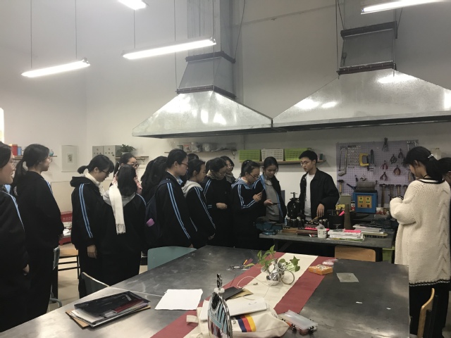 逸夫职校的同与首创、亦间、方圆等社团进行了交流,实地考我院珠宝大楼建设工地。在学院楼参观艺术设计学院版画工作室、珠宝学院无可首饰工作室。同学们深切感受到大学活跃的社团生活,珠宝学院浓厚的学习氛围。随后,万庆华书记给同学们介绍中本贯通合作办学的优势,珠宝学院的基本情况、以及未来的发展前景,教学内容丰富多彩,同学们听得也是兴致勃勃。